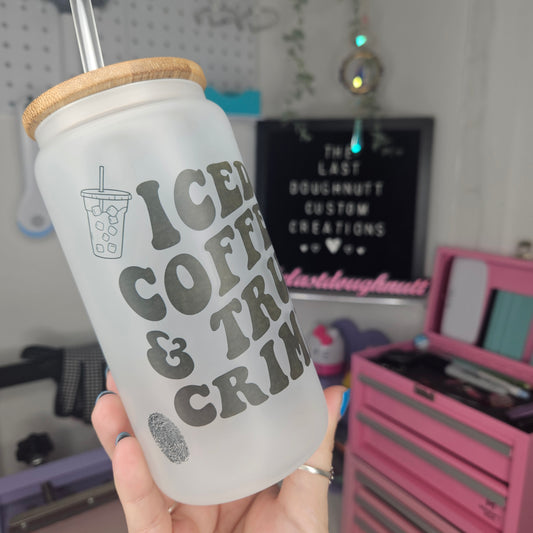 Iced Coffee & True Crime - 16oz Glass Can Cup