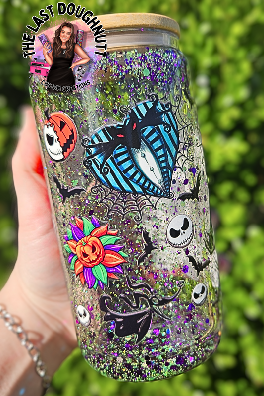 Jack VS Oogie Snowglobe Glass Can Cup (16oz)