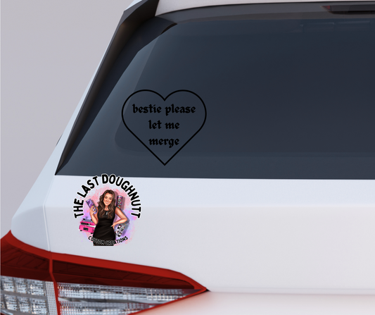 Bestie Please Let Me Merge Heart Vinyl Decal