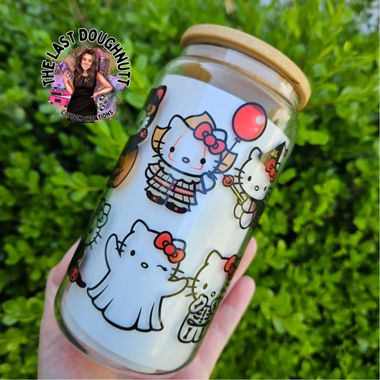 Spooky Kitty (oopsie) - 16oz Glass Clear Can Cup
