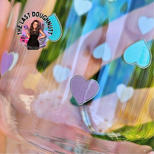 Rainbow Hearts (oopsie) - 16oz Glass Clear Can