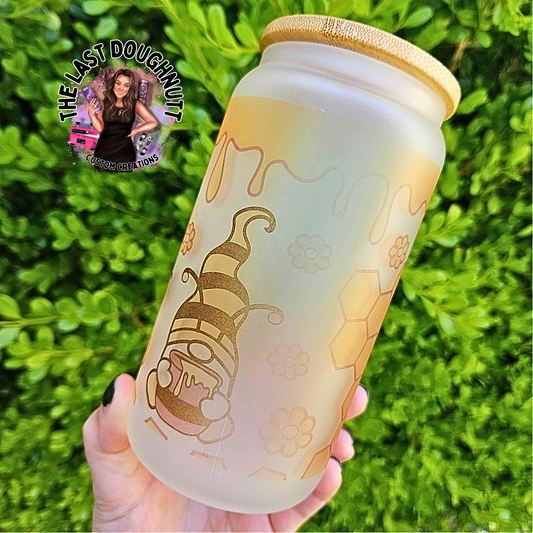 Gnome Bee Honey 1 (oopsie) - 16oz Glass Frosted Can Cup