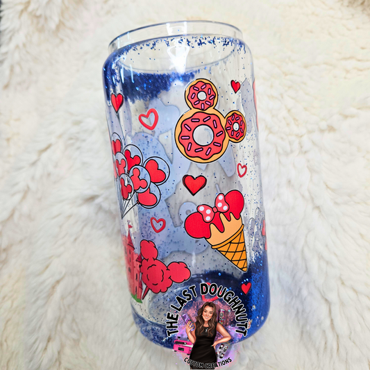 XOXO - Blue & Silver Snowglobe Glass Can Cup (16oz)