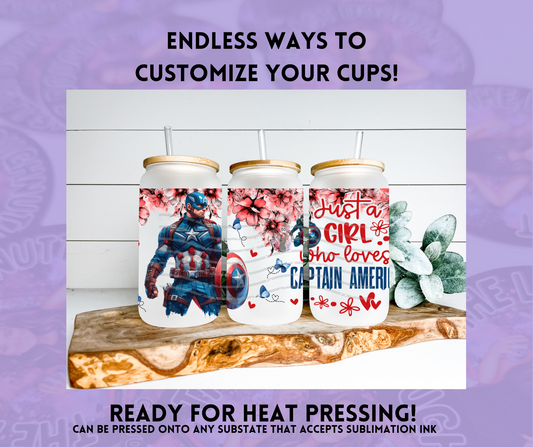 Just A Girl Who Loves Capt America Sublimation Transfer Sheet