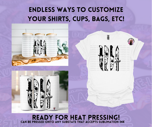Horror Killer Knife Sublimation Transfer Sheet