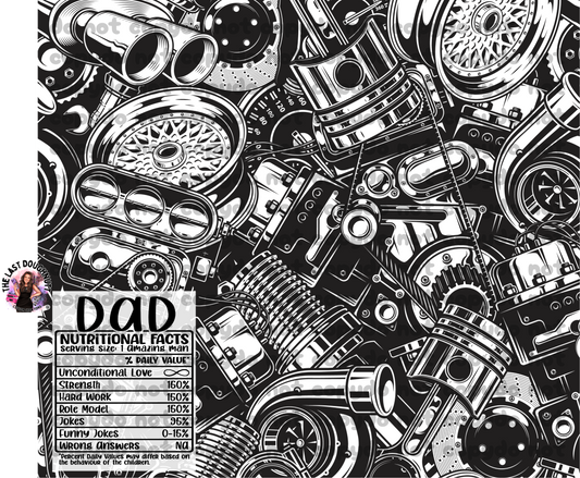 Car Parts Dad Nutrition Facts Sublimation Transfer